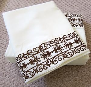 Category: Home & Kitchen Vendor: Elegant Flocking Super-Soft to your skin Wrinkle Free, no iron necessary Designed in the USA Easy care - machine wash, tumble d Product Description : Size: Queen | Color: IvorySoft sheet set with an elegant flocking touch!