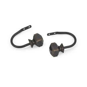 Product Description : Accent a window treatment and let in the light by holding drapery panels in place with these stylish Piazza holdbacks from Umbra. Set of two metal holdbacks features decorative molded finials and a burnished black finish. Wall-mount installation hardware is included. Coordinate your look with the Piazza drapery rod (sold separately). Designed by Thea Yuzyk for Umbra - the worldwide leader in casual, contemporary and affordable design for the home.