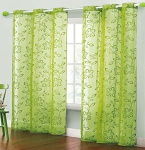 Product Description : New TWO Panels FLOCKED Texture Grommet Panels SHEER Fabric Curtain Set - Hot Green Color. Size: This Beautiful curtain set is made for Standard size window that is not bigger than 80" x 80" (200cm x 200cm). Color: Hot Green. Material: Sheer Fabric 100% Polyester with Plastic Grommets. This set includes: 2 Curtain panels, The Gross size of Each panel is: 55" width x 84" length (140cm x 213cm), The Gross size of Both panels together is 110" width x 84" length (280cm x 213cm). Care Instructions: Machine wash in cold water, Gentle cycle, Do not bleach,Tumble dry low, Light iron if needed.