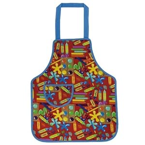 Product Description : : Ulster weavers painting childs pvc apron (phthalate free) that depicts all our favorite painting and art supplies with front pocket on a red background with blue neck strap. Wipe clean with a damp cloth. Size: 22.44-inch x 16.54-inch