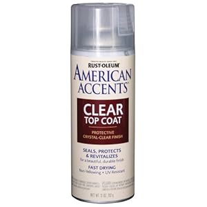 Product Description : From the ManufacturerRust-Oleum American Accents Matte Clear Spray provides a smooth, long-lasting durable finish. Apply to wood, wicker, metal, plaster, masonry or unglazed ceramic. High-quality formula resists chipping and fading. Product Description : Interior/Exterior American Accents Aerosol Paint: Satin Finish. This paint is specially formulated to create a fast drying smooth satin finish on wood; metal; wicker and more. Each container holds 12 ounces. Conforms to ASTM D4236. Made in USA. Smooth matte clear finish. Can be used outdoors or indoors. No chipping fading or peeling. Ideal for wood, wicker or metal. UV inhibitor which resists fading from sun light. Product Dimensions: 2.5 x 2.5 x 8 inches ; 1 pounds.