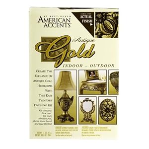 Product Description : From the ManufacturerRust-Oleum American Accents Decorative finishes capture the look of antiqued metal finishes in convenient, all-inclusive two-part kits. Kit includes base coat, top coat, sanding pad, gloves, paint brush, and idea book. Product Description : Rust-Oleum 7981955 Two Piece Enamel Paint Kit (3 Pack), Antique Gold Rust-Oleum American Accents Antique Gold Kit creates the romantic look of darkened, beautifully aged gold. Apply to wood, metal, plaster, masonry or unglazed ceramic. All-inclusive kit contains spray base coat, brush-on top coat, foam brush, abrasive pad, plastic gloves and a decorating idea book Rust-Oleum 7981955 Two Piece Enamel Paint Kit (3 Pack), Antique Gold Features: Bring the Victorian charm of Antique Gold to wood, metal, plaster, unglazed ceramics and previously painted surfaces 2-part kit includes metallic base coat, antique top coat, abrasive pad, gloves, foam brush and idea booklet