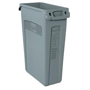 Product Description : Durable, lightweight plastic construction for long life. Venting channels reduce force required to lift full can liners by up to 60%. Ergonomic integrated handles and molded-in base grips enable easier lifting, gripping and emptying. Four molded-in pull-thru holes with cinch points to hold can liners in place. 23-gallon capacity. 22w x 11d x 30h. Shpg. wt. 8-lbs.