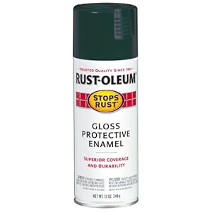 Product Description : From the ManufacturerRust-Oleum 7733830 Protective Enamel Gloss Spray Paint, Dark Hunter Green Rust-Oleum Stops Rust Gloss Protective Enamel Spray is the No. 1 rust-preventive paint available. It provides lasting protection and beauty in a wide variety of colors and finishes. Apply to metal, wood, concrete or masonry. It features a comfort tip with a wider finger pad to reduce fatigue caused by continuous spraying. In addition, there is an any-angle spray feature that allows you to spray in any direction, even upside-down. Rust-Oleum 7733830 Protective Enamel Gloss Spray Paint, Dark Hunter Green Features: More coverage per can Longer-lasting protection and beauty Excellent corrosion and chip resistance Resists fading 12-Ounce rosol Dark Hunter Green. Product Description : Rust-Oleum 7733830 Protective Enamel Gloss Spray Paint, Dark Hunter Green Rust-Oleum Stops Rust Gloss Protective Enamel Spray is the No. 1 rust-preventive paint available. It provides lasting protection and beauty in a wide variety of colors and finishes. Apply to metal, wood, concrete or masonry. It features a comfort tip with a wider finger pad to reduce fatigue caused by continuous spraying. In addition, there is an any-angle spray feature that allows you to spray in any direction, even upside-down. Rust-Oleum 7733830 Protective Enamel Gloss Spray Paint, Dark Hunter Green Features: More coverage per can Longer-lasting protection and beauty Excellent corrosion and chip resistance Resists fading 12-Ounce rosol Dark Hunter Green.