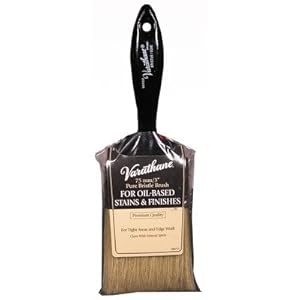 Product Description : From the ManufacturerVarathane offers a full selection of products specially formulated for each step of the wood finishing process. Our premium quality brushes allow access to those hard to reach areas. Product Description : 989711 Features: -Clean with solvent.-Quick and easy application.-Provides smooth, even application.-Premium quality.-3'' bristles. Color/Finish: -Pure bristle for oil based finishes.