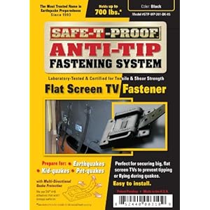 Product Description : From the ManufacturerEvery year children die from pulling large television over. The Safe-T-Proof Anti-Tip Flat Screen TV Fastener is easy to install, and should be put on all large televisions throughout the home. In addition, the Safe-T-Proof Anti-Tip Flat Screen TV Fastener keeps your television in place during an earthquake. A must have for every family! Product Description : Every year children die from pulling large television over. The Safe-T-Proof Anti-Tip Flat Screen TV Fastener is easy to install, and should be put on all large televisions throughout the home. In addition, the Safe-T-Proof Anti-Tip Flat Screen TV Fastener keeps your television in place during an earthquake. A must have for every family!