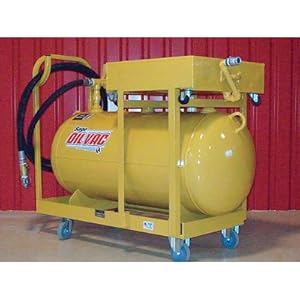 Product Description : Portable oil vac is ideal for complete fluid changes in the shop or factory. Air-powered unit utilizes a vacuum generator to quickly recover fluids from machinery and engines. Allows completely enclosed, environmentally safe and spill-free oil recovery. U.S.A. Tank Size (gal.): 60, Suction Hose Length (in.): 180, Dimensions L x W x H (in.): 44 x 20 x 43 Patented Filter StingerTM allows user to easily drain hot oil filters Rolls on casters System includes 60-gallon old oil tank, 10-gallon drain pan, vacuum generator (requires 10 CFM, 70 PSI air compressor, not included), one 3/4in. x 15-ft. hose and filter stinger