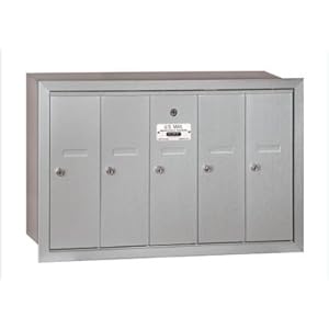 Product Description : Sleek and streamlined thanks to a recessed design, this five-door mailbox unit will be an excellent choice for a wide variety of commercial applications. Ideal for governmental buildings, universities or office facilities that require secure mail delivery, the unit is made of cast aluminum and features separate locks for each box. Aluminum finish five-door vertical mailbox unit is made of cast aluminum. Private access design. Mailboxes are ideal for colleges and schools, corporate mailrooms, government agencies and many other applications Recessed mounted units fit into a rough opening and are secured with mounting hardware through the back or side panels Fully integrated flanged collar which fits over the rough opening The rough opening for recessed mounted vertical Mailboxes is 1.5 in. less than the unit's width, 1.25 in. less than the unit's height and equal to the unit's depth Includes a master commercial lock with two keysComes standard with lock and keys for each individual mailbox. Does not include master lock for U.S.P.S entry; must be provided by U.S.P.S. 29.75 in. W x 7.5 in. D x 19 in. H (35?lbs.)