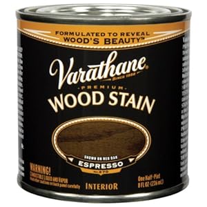 Product Description : From the ManufacturerVarathane Premium Wood Stain penetrates up to twice as deep as competitive brands to reveal the beauty of natural wood grain. Apply to wood for long-lasting, translucent stain. Uses exclusive soya-oil base and anti-settling formula for better grain enhancement with less stirring during application. Product Description : 241412 Features: -Ideal for use on all interior wood projects including furniture, cabinets, doors, trim, floors, and paneling.-Clean up with mineral spirits or paint thinner.-Espresso.-1 quart. Color/Finish: -A Soya oil-based premium wood stain that is formulated with a unique base for deeper penetration and premium synthetic pigments for clearer color. Specifications: -Covers approximately 150 square feet per quart.