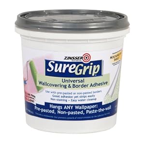 Product Description : From the ManufacturerSure Grip Universal Border Adhesive hangs pre-pasted, non-pasted and paste-the-wall (non-woven) borders over any wallpapered or painted surface. Product Description : Suregrip Universal Wallcovering Adhesive can be used for hanging ANY wallpaper or border - pre-pasted, non-pasted,paste-the-wall (non-woven), borders over vinyl - even lightweight vinyl. Use it for hanging on ANY surface - painted, primed, or wallpapered.