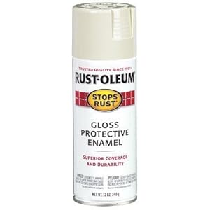 Product Description : From the ManufacturerRust-Oleum 7770830 Protective Enamel Gloss Spray Paint, Almond Rust-Oleum Stops Rust Gloss Protective Enamel Spray is the No. 1 rust-preventive paint available. It provides lasting protection and beauty in a wide variety of colors and finishes. Apply to metal, wood, concrete or masonry. It features a comfort tip with a wider finger pad to reduce fatigue caused by continuous spraying. In addition, there is an any-angle spray feature that allows you to spray in any direction, even upside-down. Rust-Oleum 7770830 Protective Enamel Gloss Spray Paint, Almond Features: More coverage per can Longer-lasting protection and beauty Excellent corrosion and chip resistance Resists fading 12-Ounce rosol Almond. Product Description : Rust-Oleum 7770830 Protective Enamel Gloss Spray Paint, Almond Rust-Oleum Stops Rust Gloss Protective Enamel Spray is the No. 1 rust-preventive paint available. It provides lasting protection and beauty in a wide variety of colors and finishes. Apply to metal, wood, concrete or masonry. It features a comfort tip with a wider finger pad to reduce fatigue caused by continuous spraying. In addition, there is an any-angle spray feature that allows you to spray in any direction, even upside-down. Rust-Oleum 7770830 Protective Enamel Gloss Spray Paint, Almond Features: More coverage per can Longer-lasting protection and beauty Excellent corrosion and chip resistance Resists fading 12-Ounce rosol Almond.