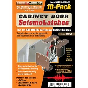 Product Description : From the ManufacturerThe new SeismoLatch cabinet door latch is the world's first earthquake activated fastening latch. Unlike push latches or child safety fasteners, the SeismoLatch allows for full use of cabinet doors between seismic events. No need to continually feel for a release mechanism, the patented SiesmoLatch lock mechanism engages in earthquake motion, and keeps contents inside. Available in three colors, the SeismoLatch is essential part of your preparedness plan. Product Description : The new SeismoLatch cabinet door latch is the world's first earthquake activated fastening latch. Unlike push latches or child safety fasteners, the SeismoLatch allows for full use of cabinet doors between seismic events. No need to continually feel for a release mechanism, the patented SiesmoLatch lock mechanism engages in earthquake motion, and keeps contents inside. Available in three colors, the SeismoLatch is essential part of your preparedness plan.
