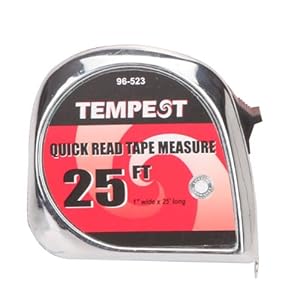 Product Description : The Sainty International 96-523 Tempest Chrome Tape Measure holds 25-feet by 1-Inch of measuring tape in a case only 6-1/4-Inch long and 4-1/4-Inch wide. This tape measure can be easily carried in your pocket or toolkit and allows you to measure around curves or corners. This item features a using a heavy duty rubber case. The Sainty International 96-523 Tempest Chrome Tape Measure comes with a lifetime warranty. Sainty International has over 30-years experience in dealing with hand tools, power tools accessories and automotive accessories. It has always been Sainty International's primary goal to supply high quality products at competitive prices and to provide excellent service.