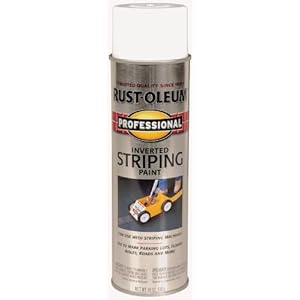 Product Description : From the ManufacturerRust-Oleum Professional 18 oz striping paint provides and easy consistent application with an inverted spray for professional use. Great for striping parking lots, athletic fields, aisle ways and more. Product Description : Rust-Oleum Professional Striping Paint Spray creates parking lots, aisles, roads and more. Apply to concrete, blacktop, gravel, soil or grass. Resists weather and abrasion for durable, long-lasting performance.